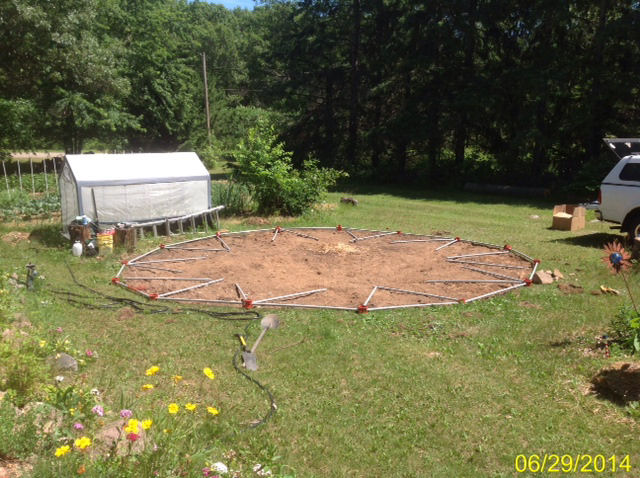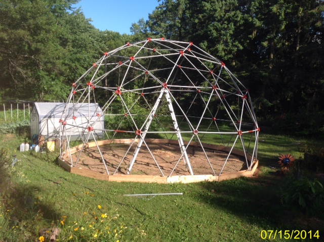 I plan to add a little heated fan, blowing between the walls of the double wall dome. Hopefully, I can extend our growing season with this. I'm thinking of burying some pex tubing under the ground, as well, for in floor heat.